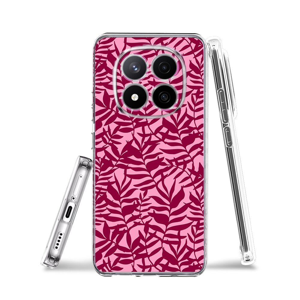 Etui do Xiaomi Redmi Note 14 Pro 4G przeźroczyste, silikonowe Flexi, bordowe liście