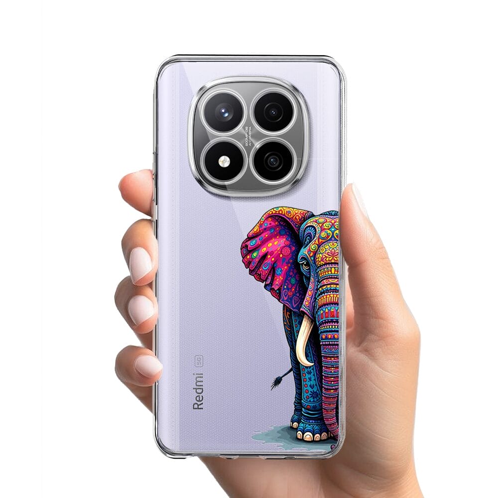 Etui do Xiaomi Redmi Note 14 Pro 4G przeźroczyste, silikonowe Flexi, Dzika Mandala, Słoń