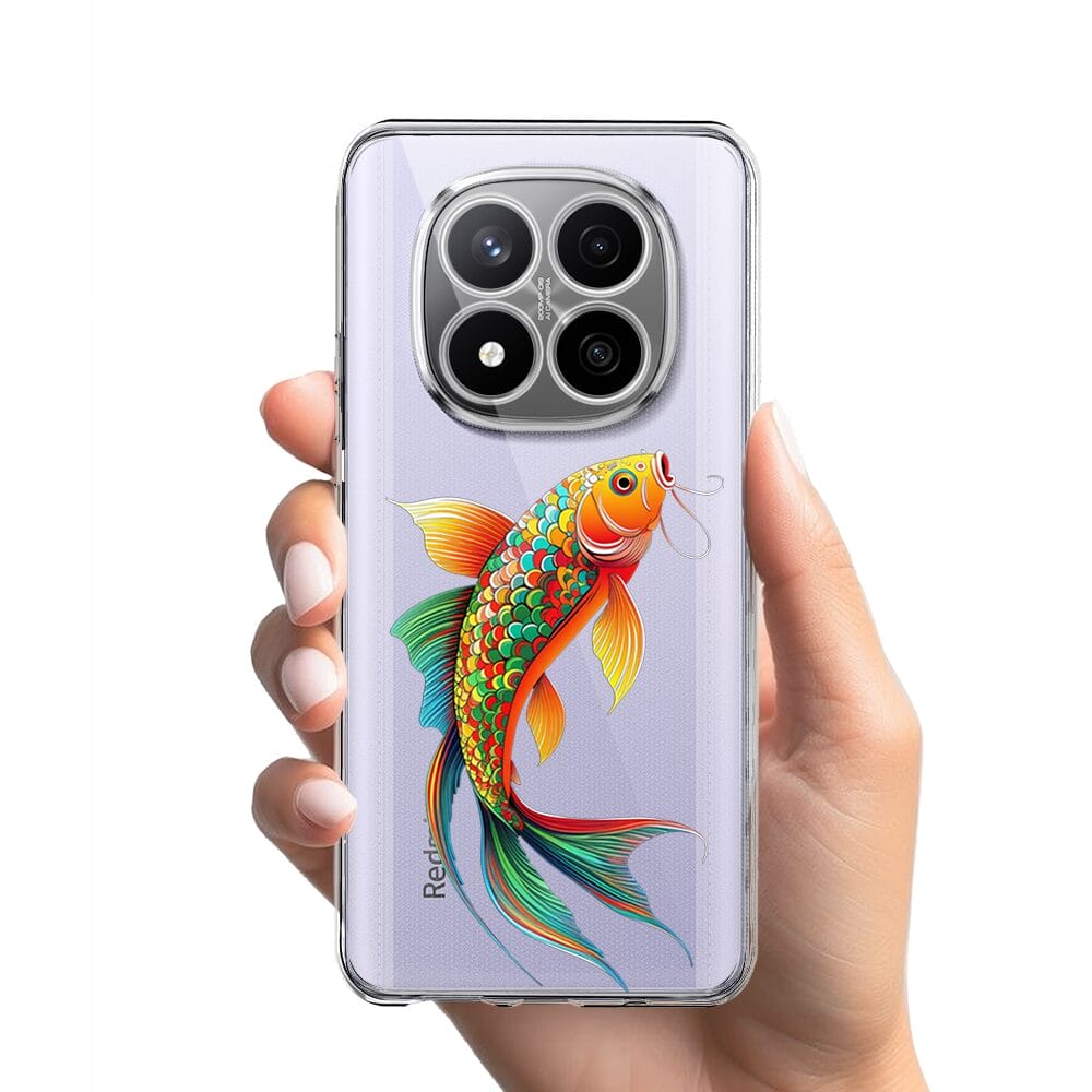 Etui do Xiaomi Redmi Note 14 Pro 4G przeźroczyste, silikonowe Flexi, Dzika Mandala, Złota ryba