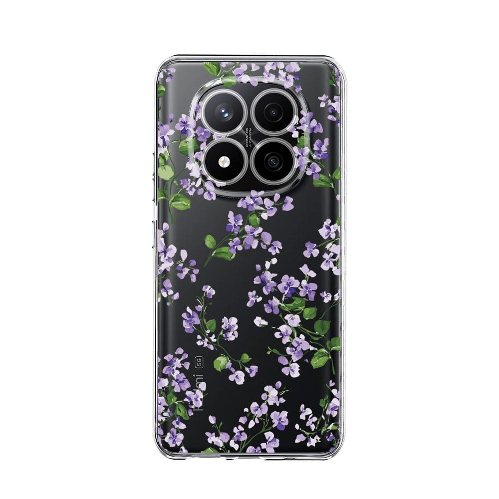 Etui do Xiaomi Redmi Note 14 Pro 4G przeźroczyste, silikonowe Flexi, Fioletowe Bratki