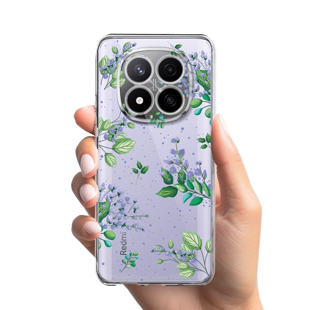 Etui do Xiaomi Redmi Note 14 Pro 4G przeźroczyste, silikonowe Flexi, fioletowe kwiatki