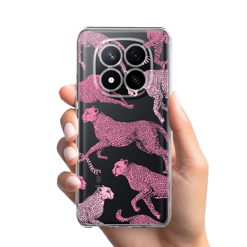 Etui do Xiaomi Redmi Note 14 Pro 4G przeźroczyste, silikonowe Flexi, Mystic, Różowe pumy