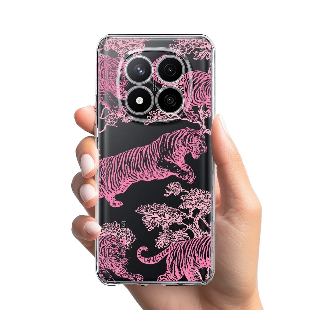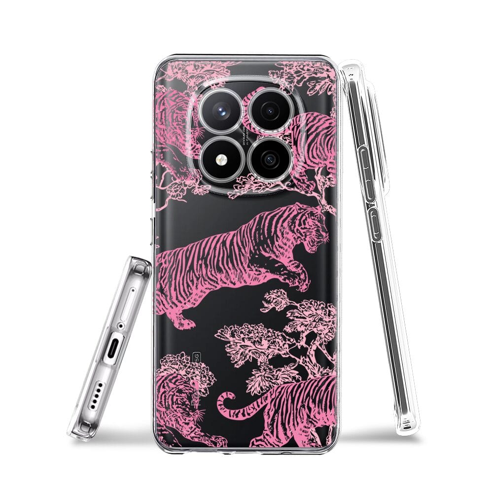 Etui do Xiaomi Redmi Note 14 Pro 4G przeźroczyste, silikonowe Flexi, Mystic, Różowe tygrysy