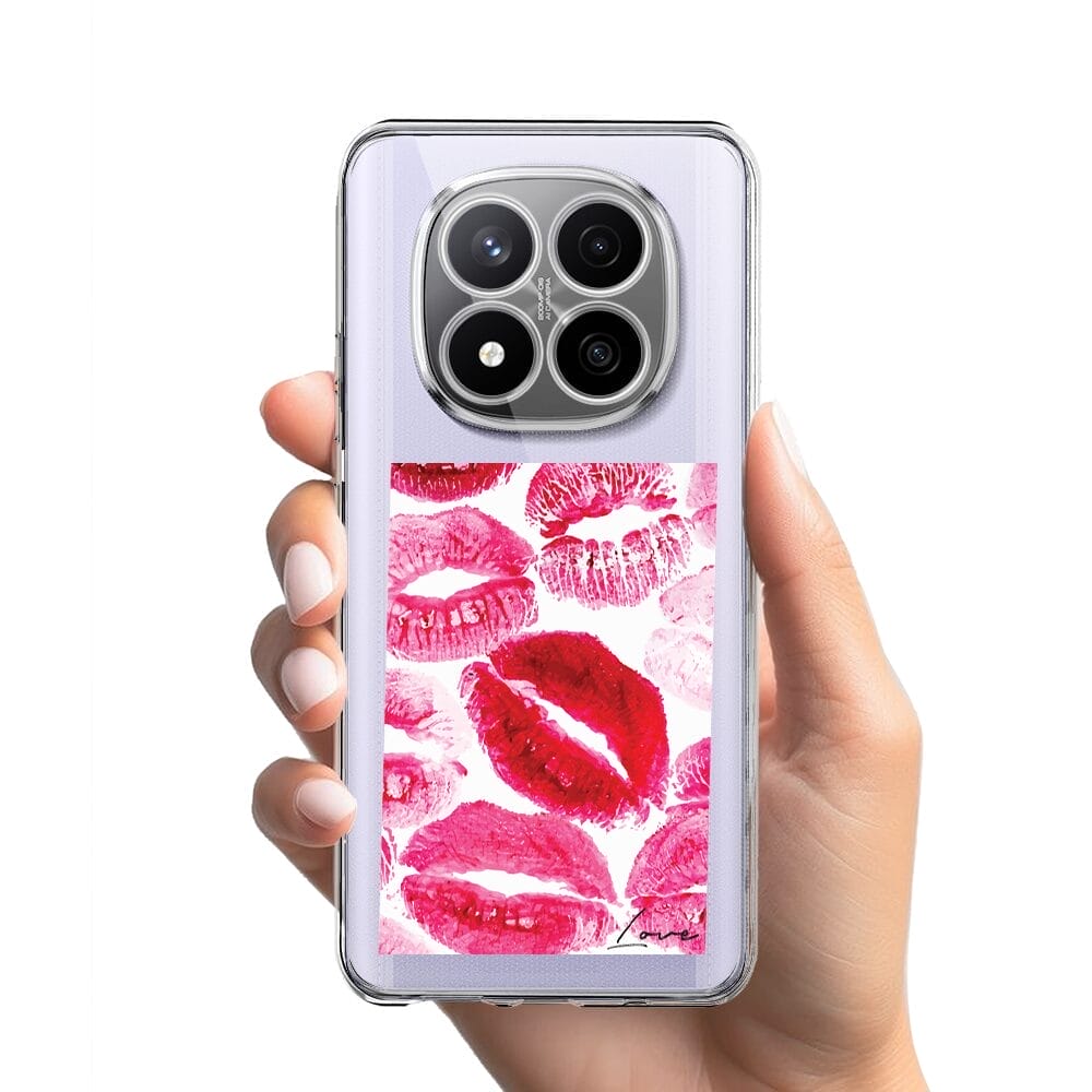 Etui do Xiaomi Redmi Note 14 Pro 4G przeźroczyste, silikonowe Flexi, pocałunki z napisem „love”