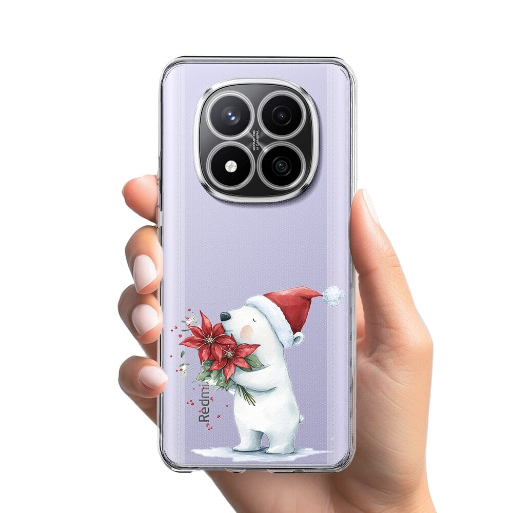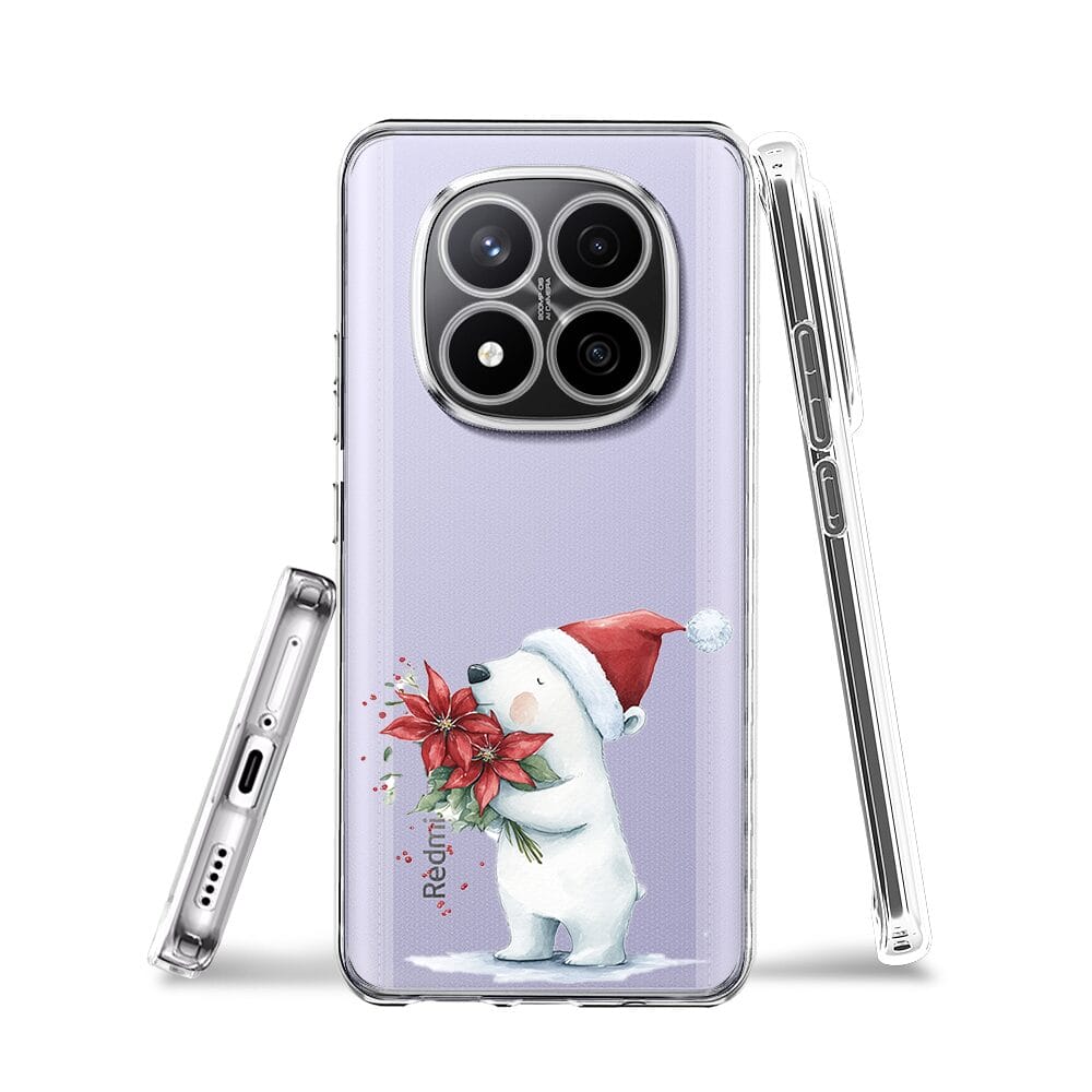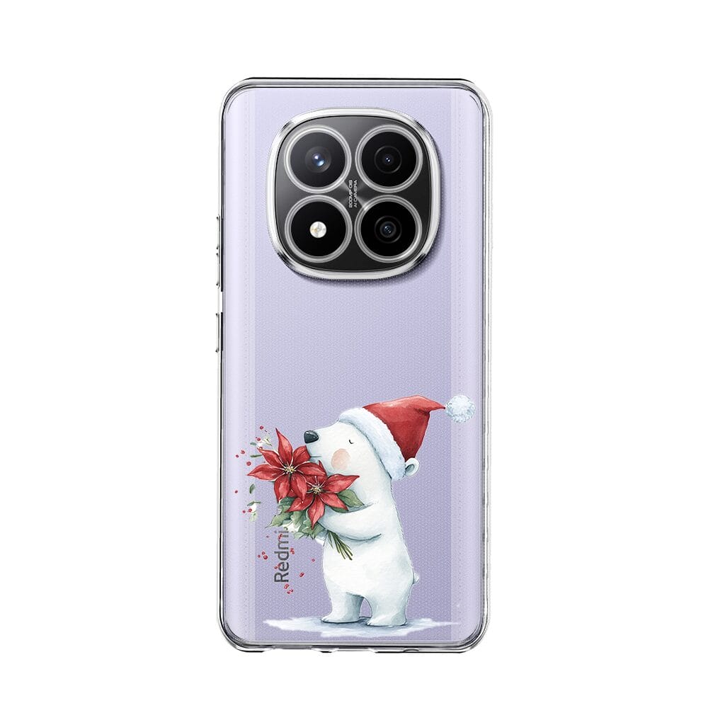 Etui do Xiaomi Redmi Note 14 Pro 4G przeźroczyste, silikonowe Flexi, Przytulne święta, Miś świąteczny