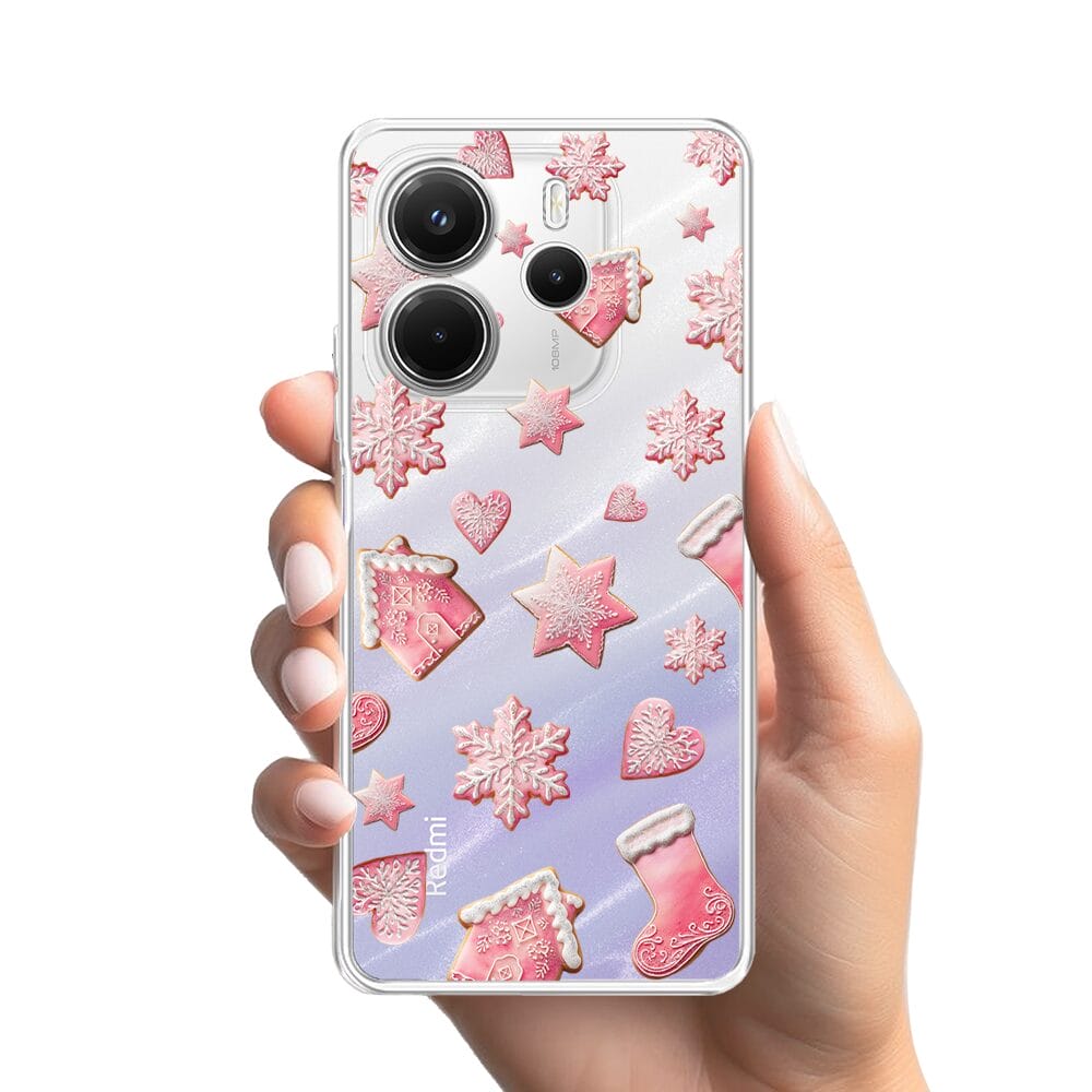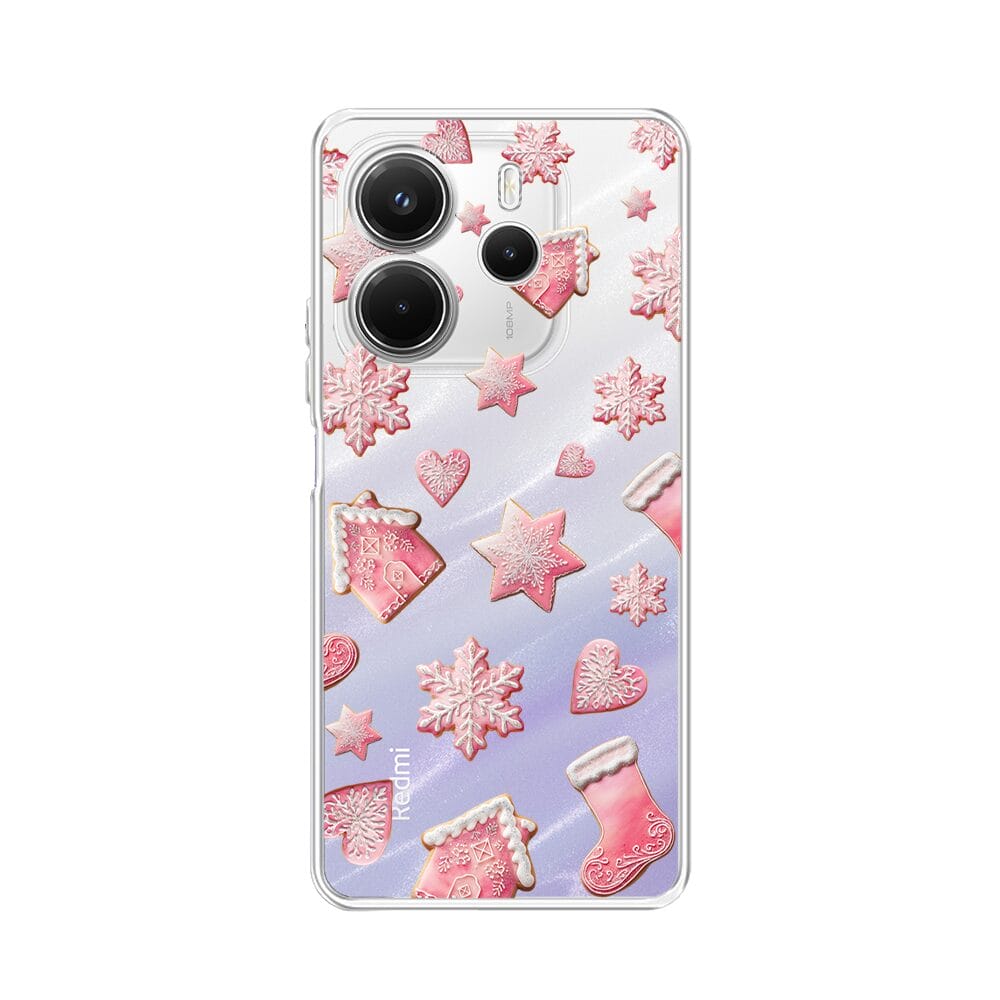 Etui do Xiaomi Redmi Note 14 Pro 4G przeźroczyste, silikonowe Flexi, Przytulne święta, Różowe pierniczki