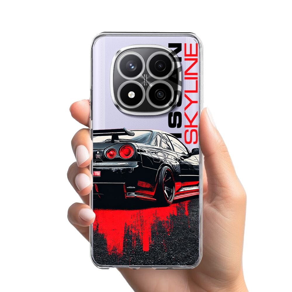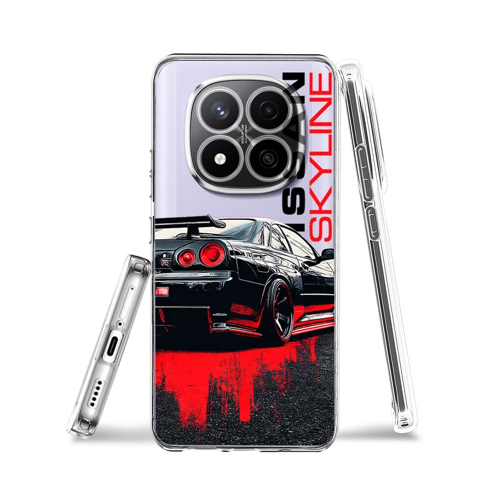 Etui do Xiaomi Redmi Note 14 Pro 4G przeźroczyste, silikonowe Flexi, Szybkie Auta, czarny Skyline