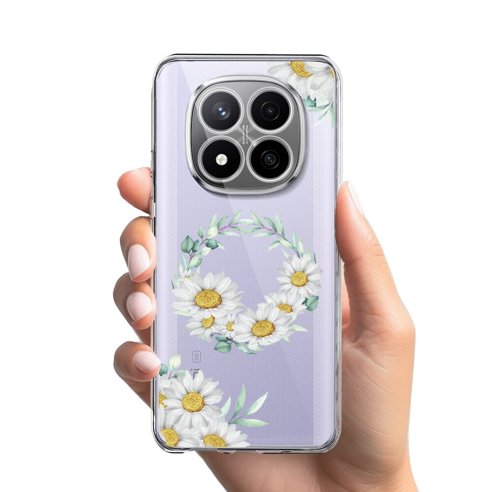 Etui do Xiaomi Redmi Note 14 Pro 4G przeźroczyste, silikonowe Flexi, wianek stokrotek