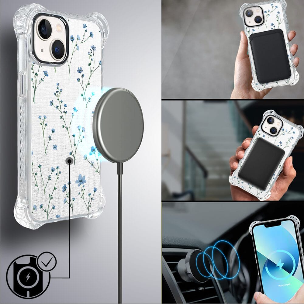 Etui iPhone 13 IBIZU DropGuard Ultra z MagSafe, Pastel Bloom, Niebieski sen