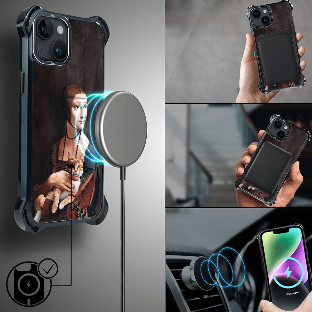 Etui iPhone 14 IBIZU DropGuard Ultra z MagSafe, Leonardo Da Vinci, dama z kotem