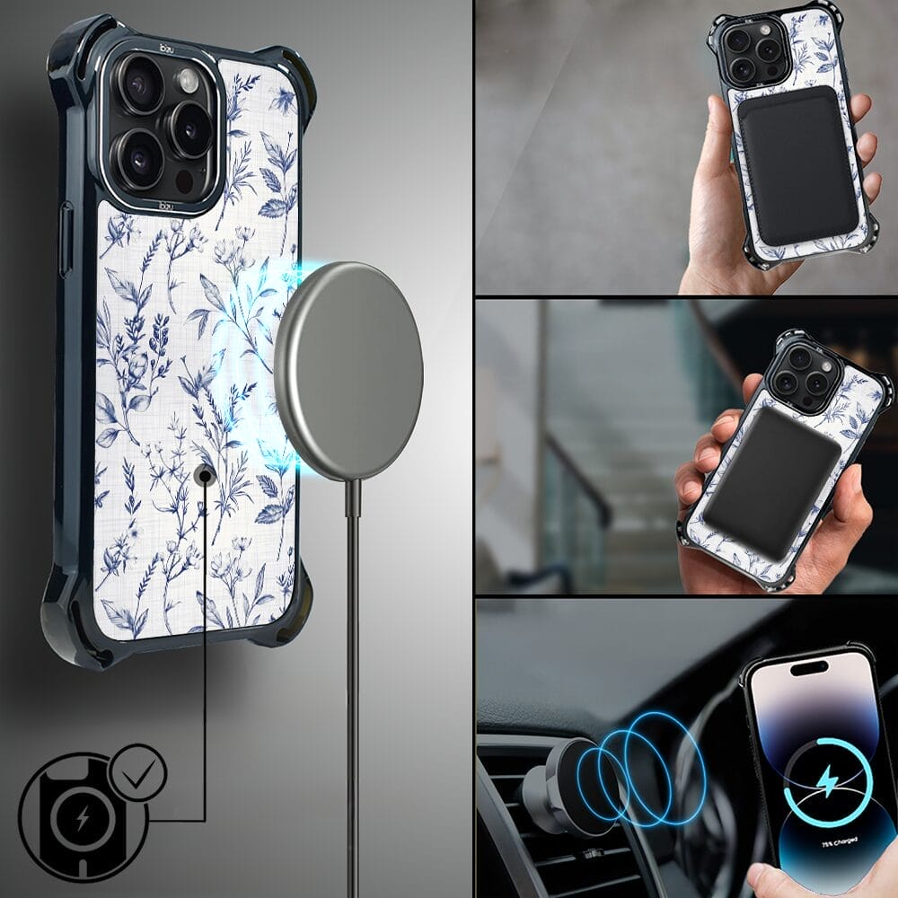 Etui iPhone 14 Pro Max IBIZU DropGuard Ultra z MagSafe, Pastel Bloom, Lazurowe szepty