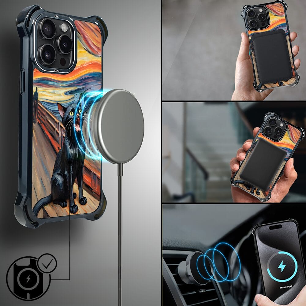 Etui iPhone 15 Pro IBIZU DropGuard Ultra z MagSafe, Edvard Munch, krzyk kota