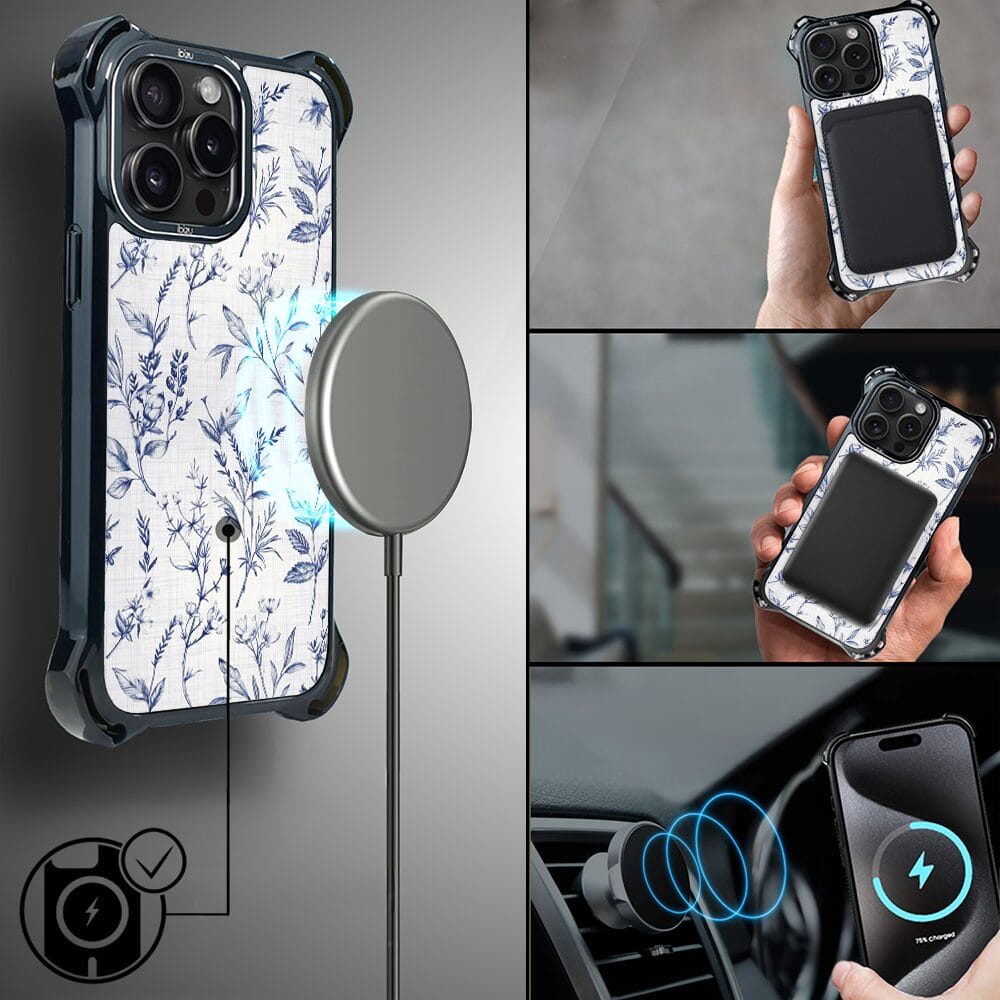 Etui iPhone 15 Pro IBIZU DropGuard Ultra z MagSafe, Pastel Bloom, Lazurowe szepty