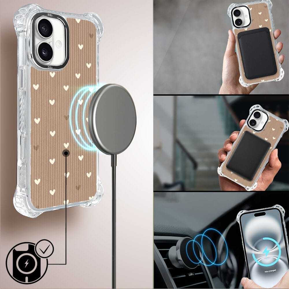 Etui iPhone 16 IBIZU DropGuard Ultra z MagSafe, Boho, Pudrowe serca
