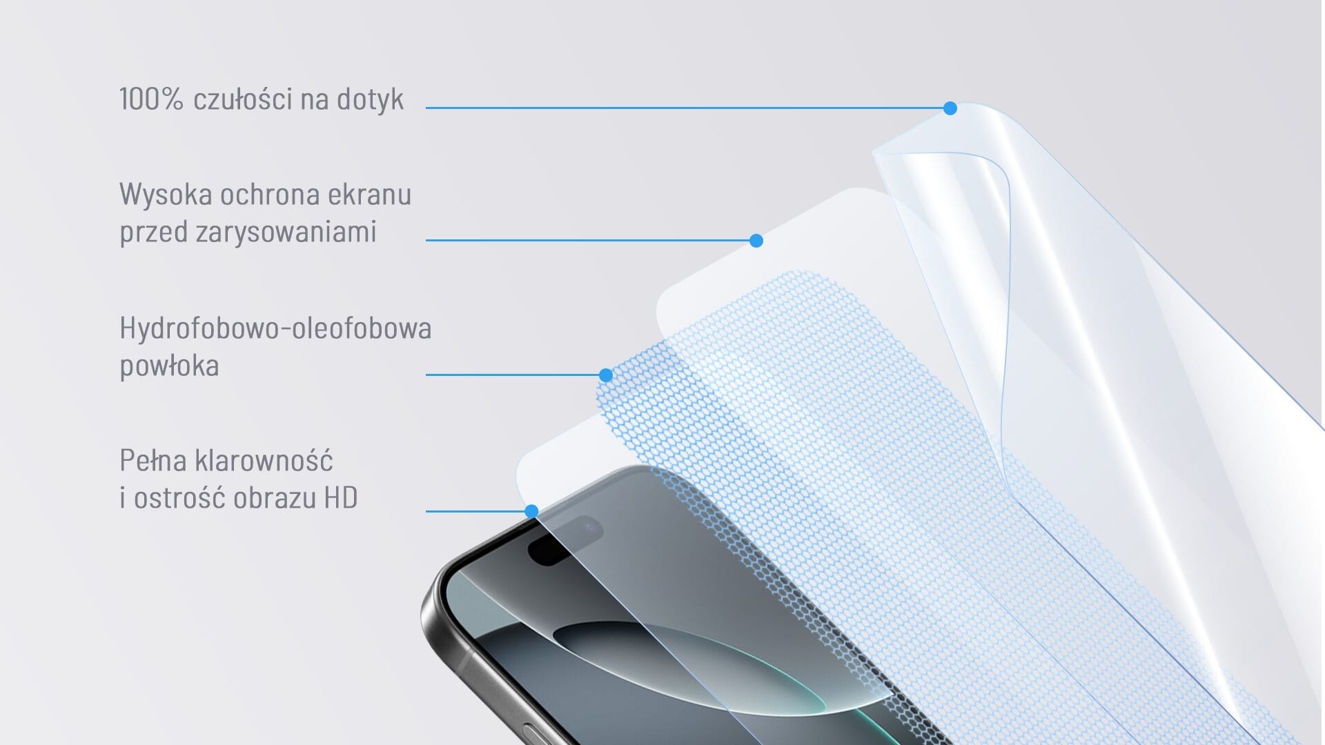 ✔ Struktura folii może wspierać samoregenerację przy drobnych zarysowaniach ekranu.