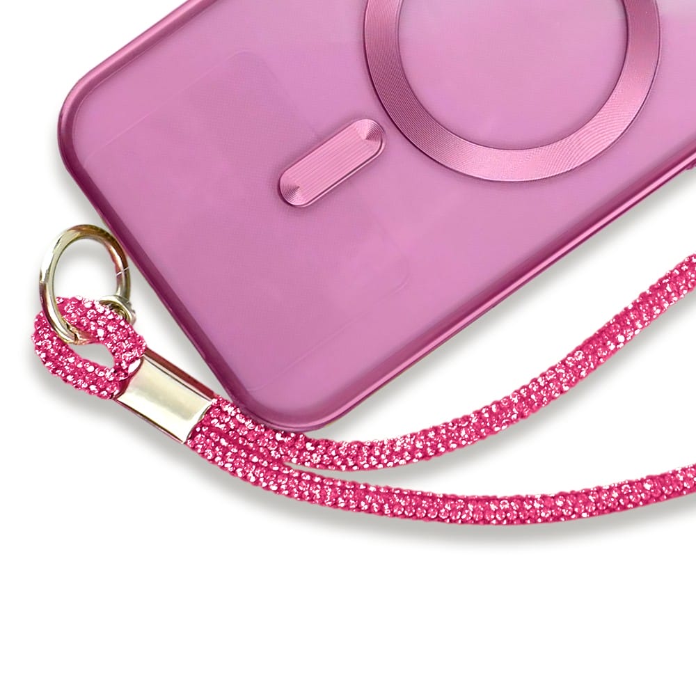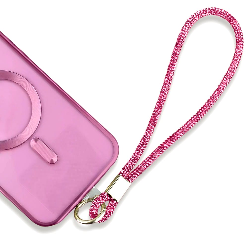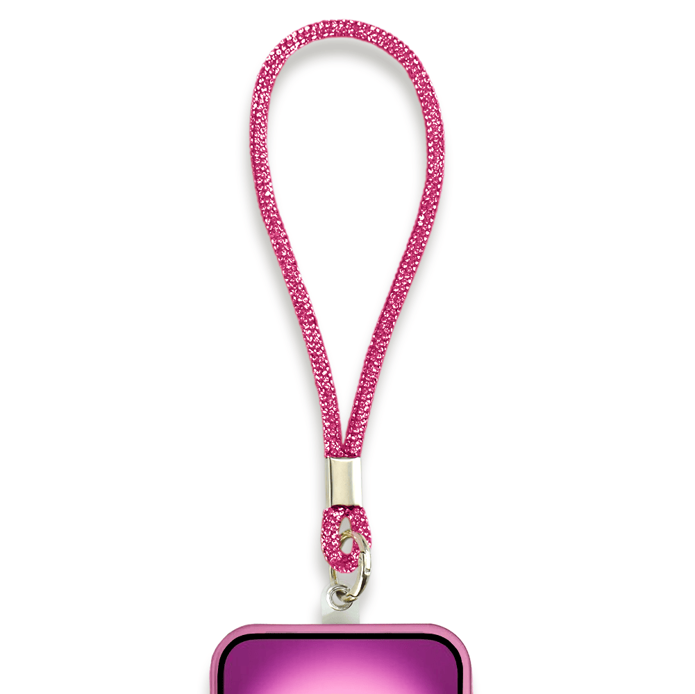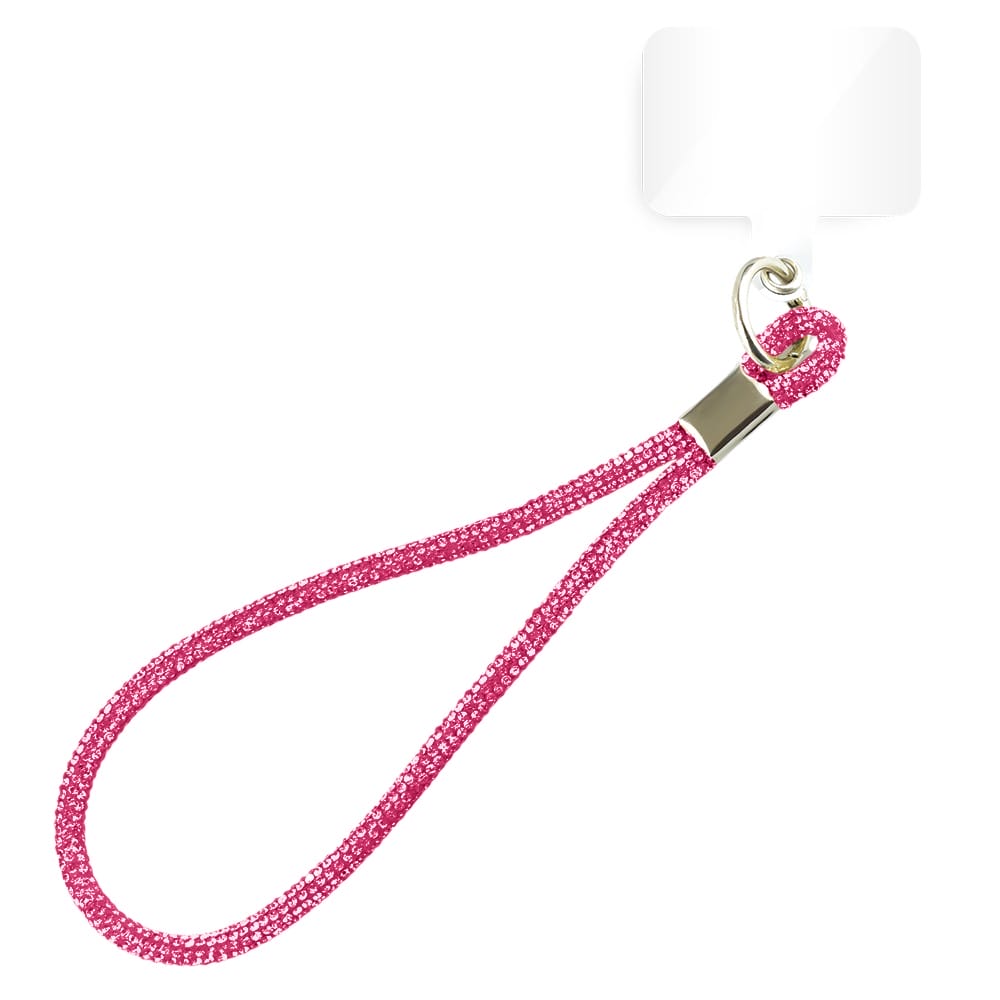 Krótka smycz, pasek na nadgarstek do telefonu, ciemny różowy, błyszcząca