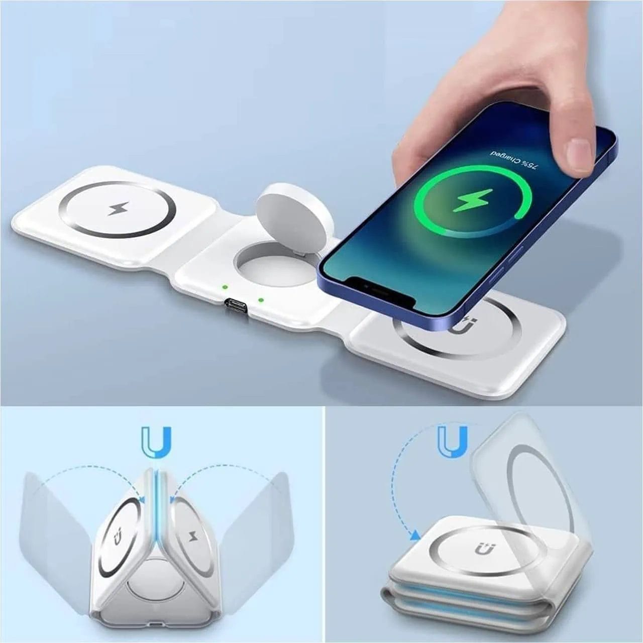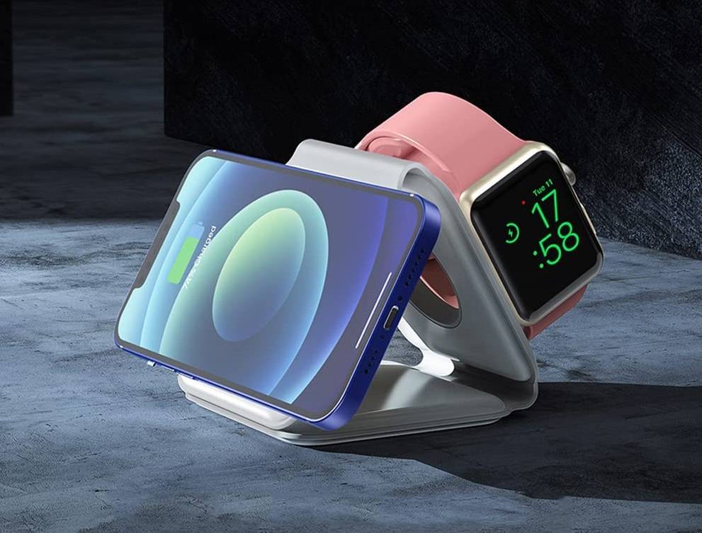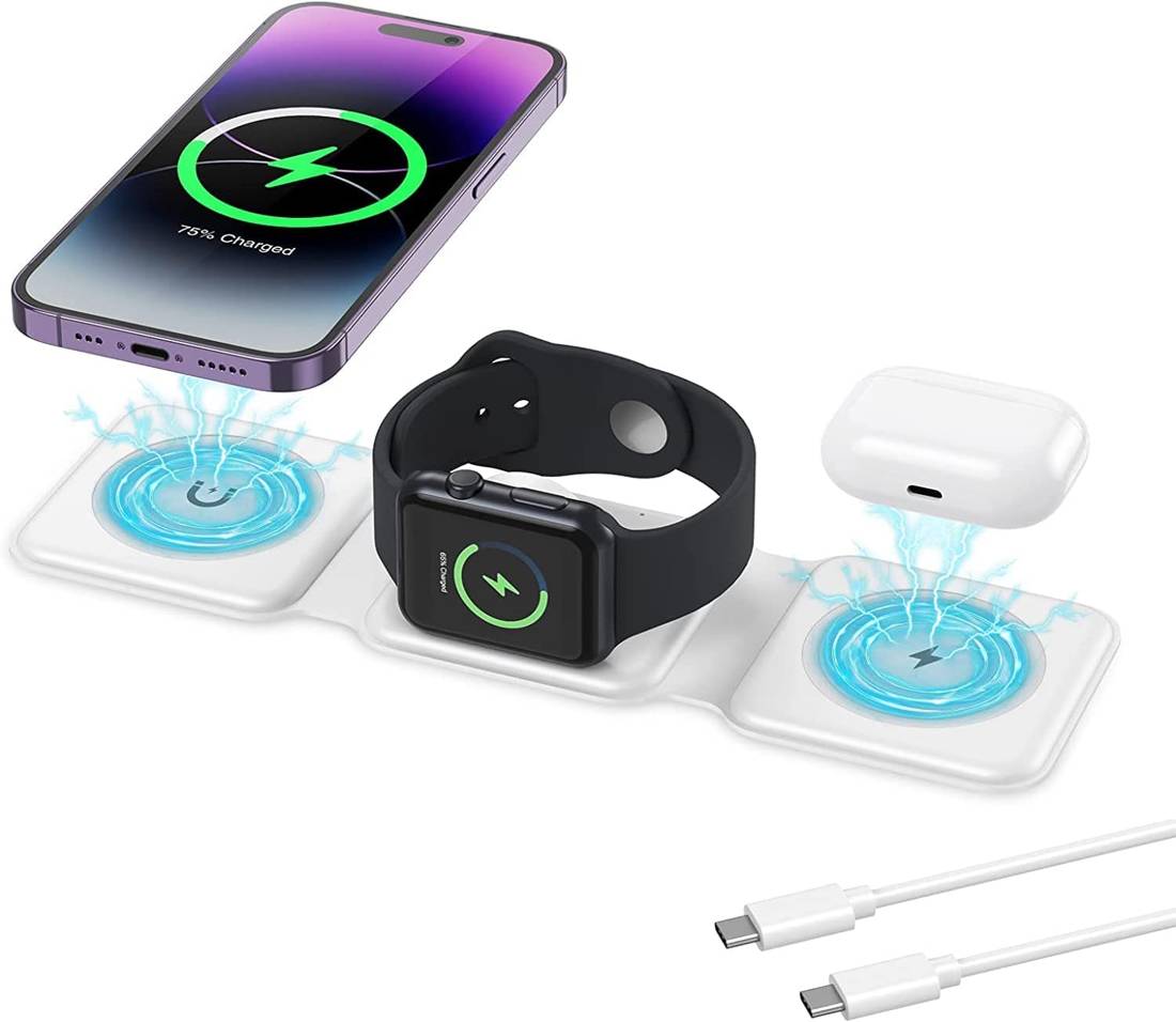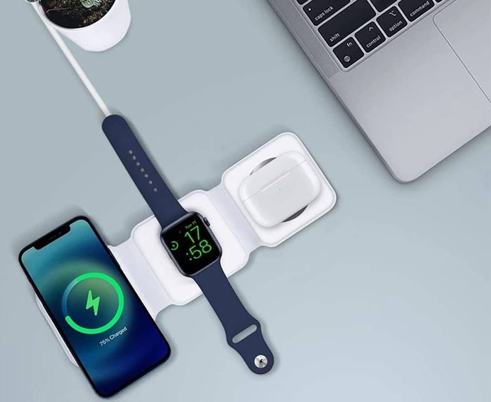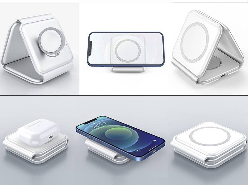 Wielofunkcyjny bezprzewodowy zestaw ładujący może ładować telefony komórkowe, zegarki i bezprzewodowe zestawy słuchawkowe w tym samym czasie. Składana magnetyczna ładowarka pasuje do urządzeń Apple tj. iPhone, Apple Watch, AirPods. Wielozadaniowy stojak to idealne rozwiązanie dla osób ceniących design i porządek w swoich akcesoriach. Stojak jest wyposażony w bezprzewodową magnetyczną ładowarkę, kompatybilną że wszystkimi urządzeniami z funkcją ładowania wireless.