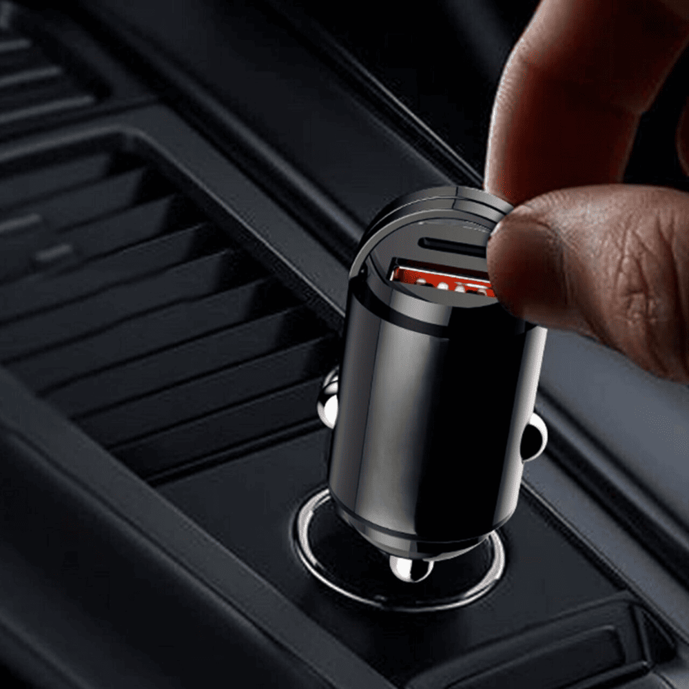 Ładowarka samochodowa USB + USB Typ C kompaktowa, mocna 48W PD QC, mini