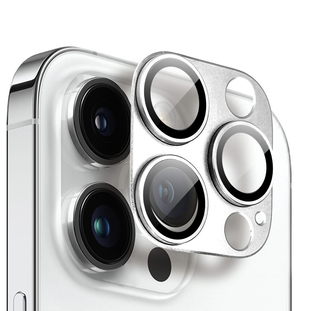 Metalowa osłona na cały aparat z wbudowanymi szkłami do iPhone 14 Pro Max, srebrna