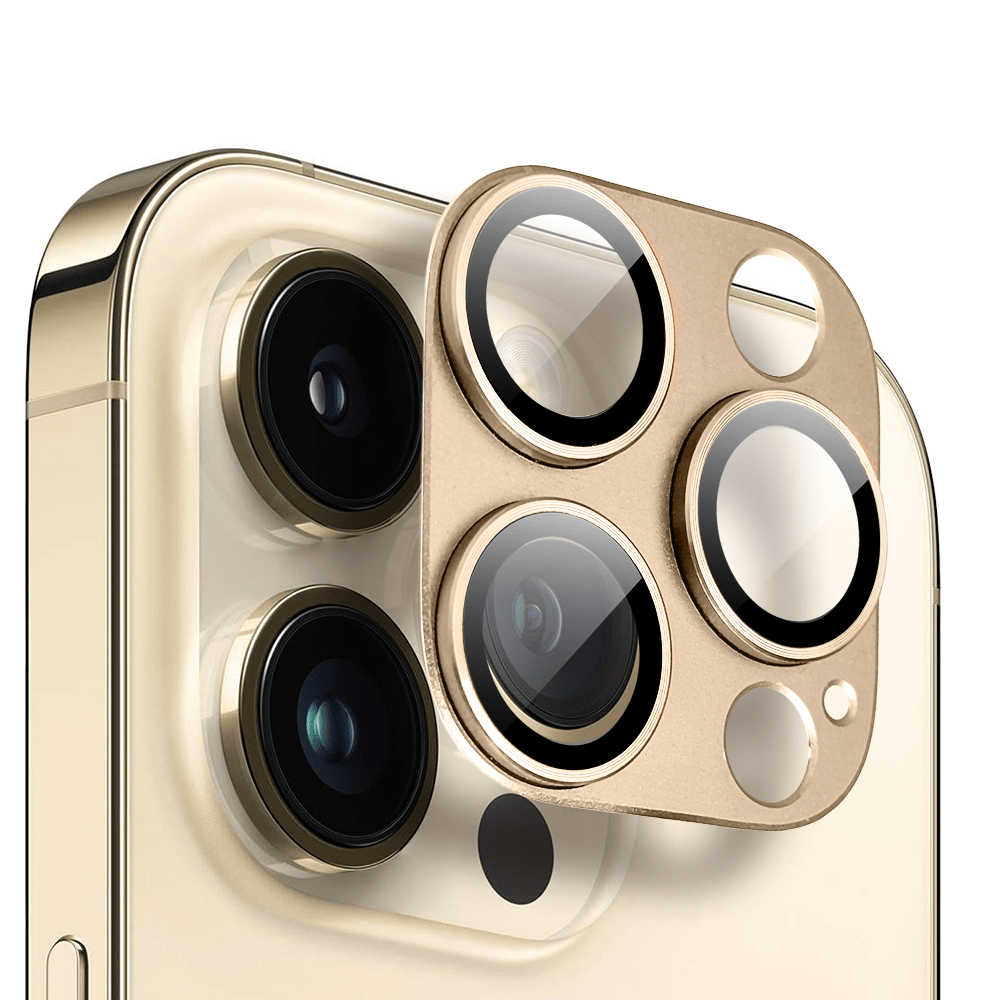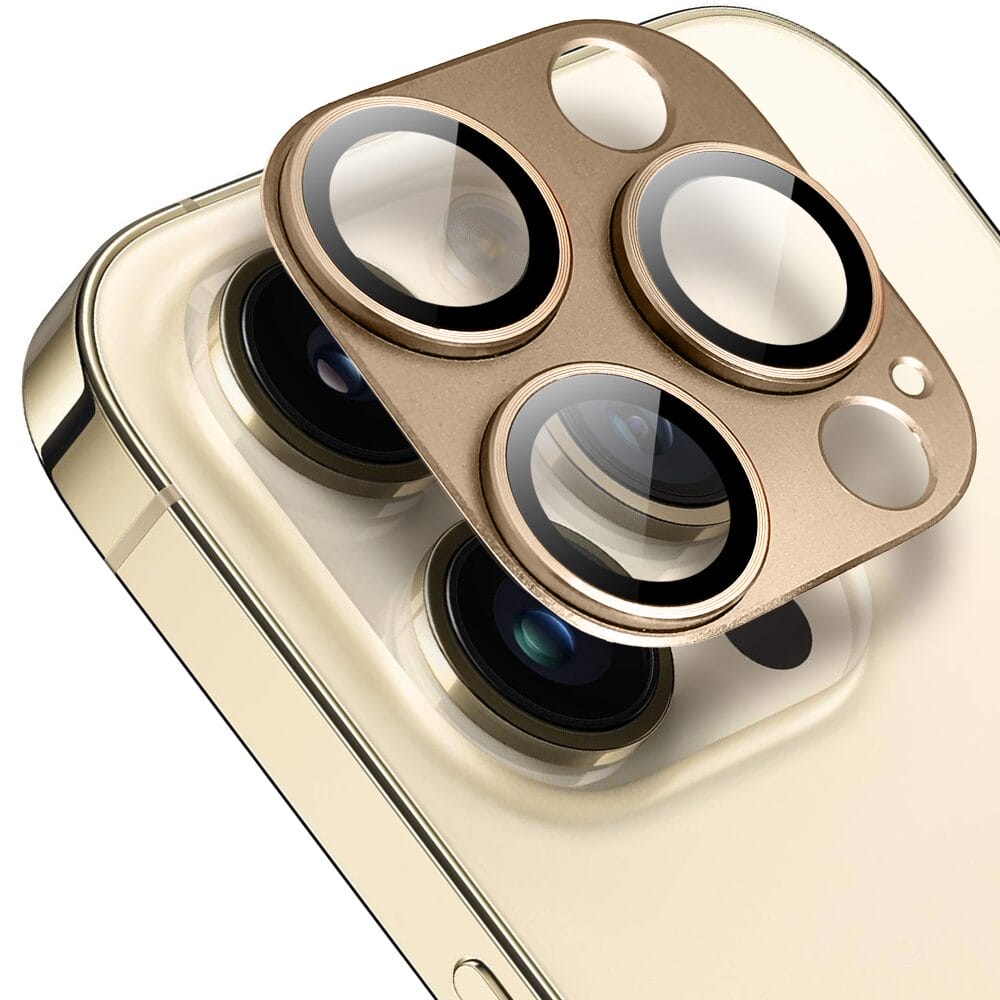 Metalowa osłona na cały aparat z wbudowanymi szkłami do iPhone 14 Pro, złota