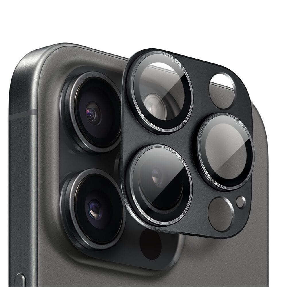 Metalowa osłona na cały aparat z wbudowanymi szkłami do iPhone 15 Pro Max, czarna