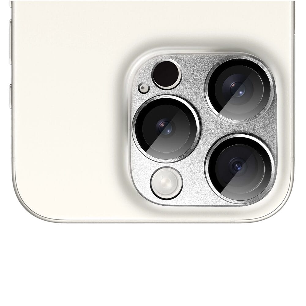 Metalowa osłona na cały aparat z wbudowanymi szkłami do iPhone 15 Pro Max, srebrna