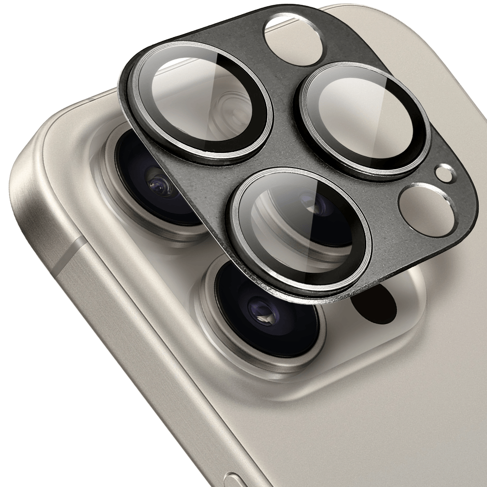 Metalowa osłona na cały aparat z wbudowanymi szkłami do iPhone 15 Pro Max, tytanowa