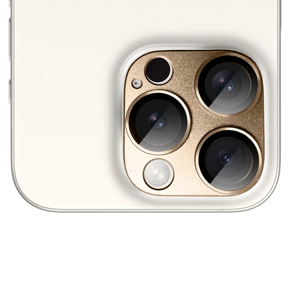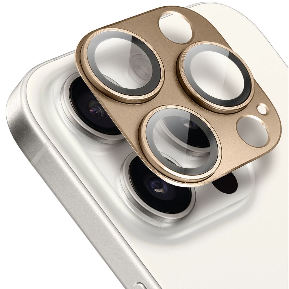 Metalowa osłona na cały aparat z wbudowanymi szkłami do iPhone 15 Pro Max, złota