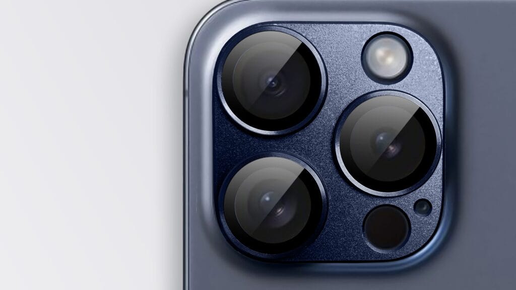 Metalowa osłona na cały aparat z wbudowanymi szkłami do iPhone 15 Pro, tytan błękitny