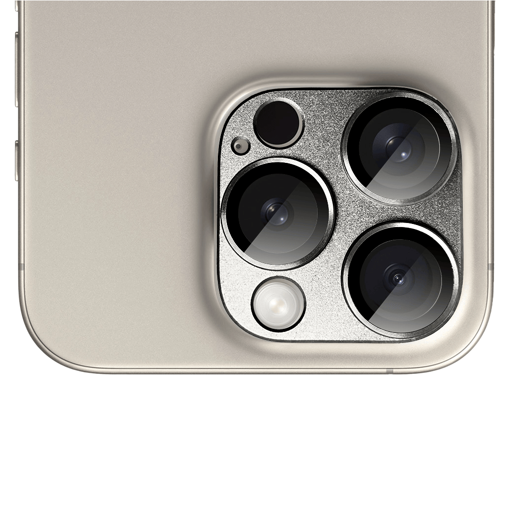 Metalowa osłona na cały aparat z wbudowanymi szkłami do iPhone 15 Pro, tytanowa
