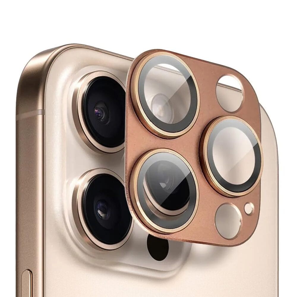 Metalowa osłona na cały aparat z wbudowanymi szkłami do iPhone 16 Pro, brązowa