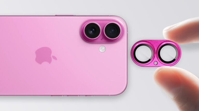 Metalowa osłona na cały aparat z wbudowanymi szkłami do iPhone 16, różowa