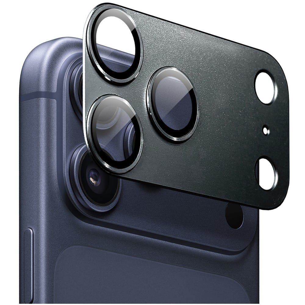 Metalowa osłona na cały aparat z wbudowanymi szkłami do iPhone 17 Pro, czarna