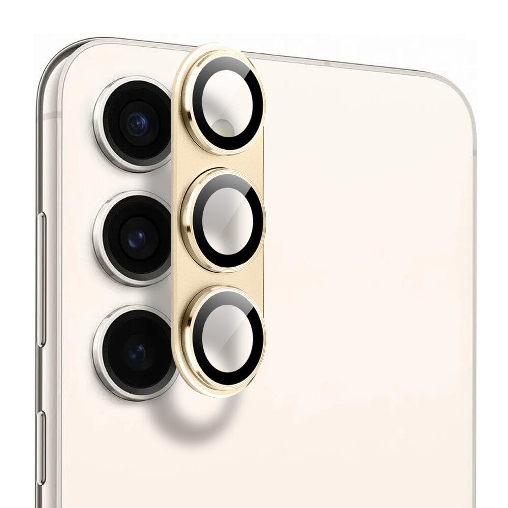 Metalowa osłona na cały aparat z wbudowanymi szkłami do Samsung S23 Plus, złota