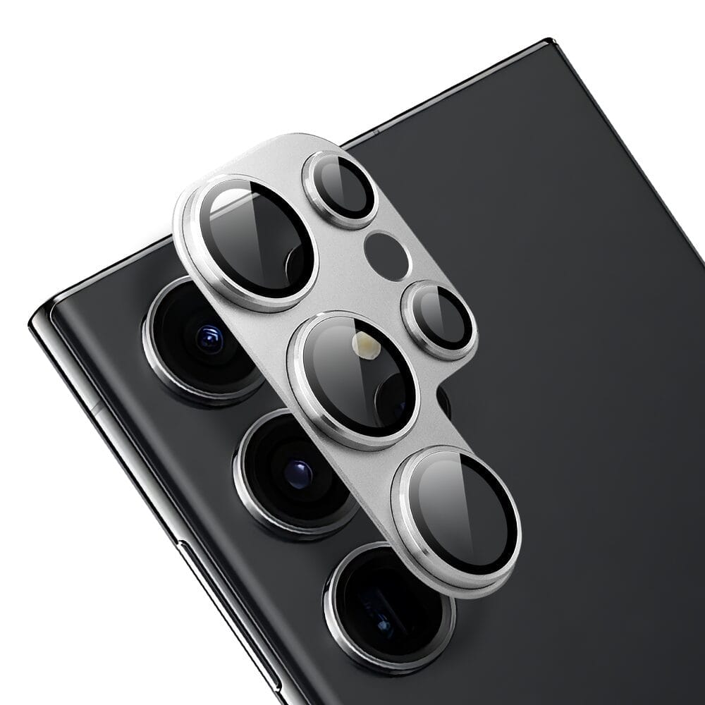 Metalowa osłona na cały aparat z wbudowanymi szkłami do Samsung S23 Ultra, srebrna