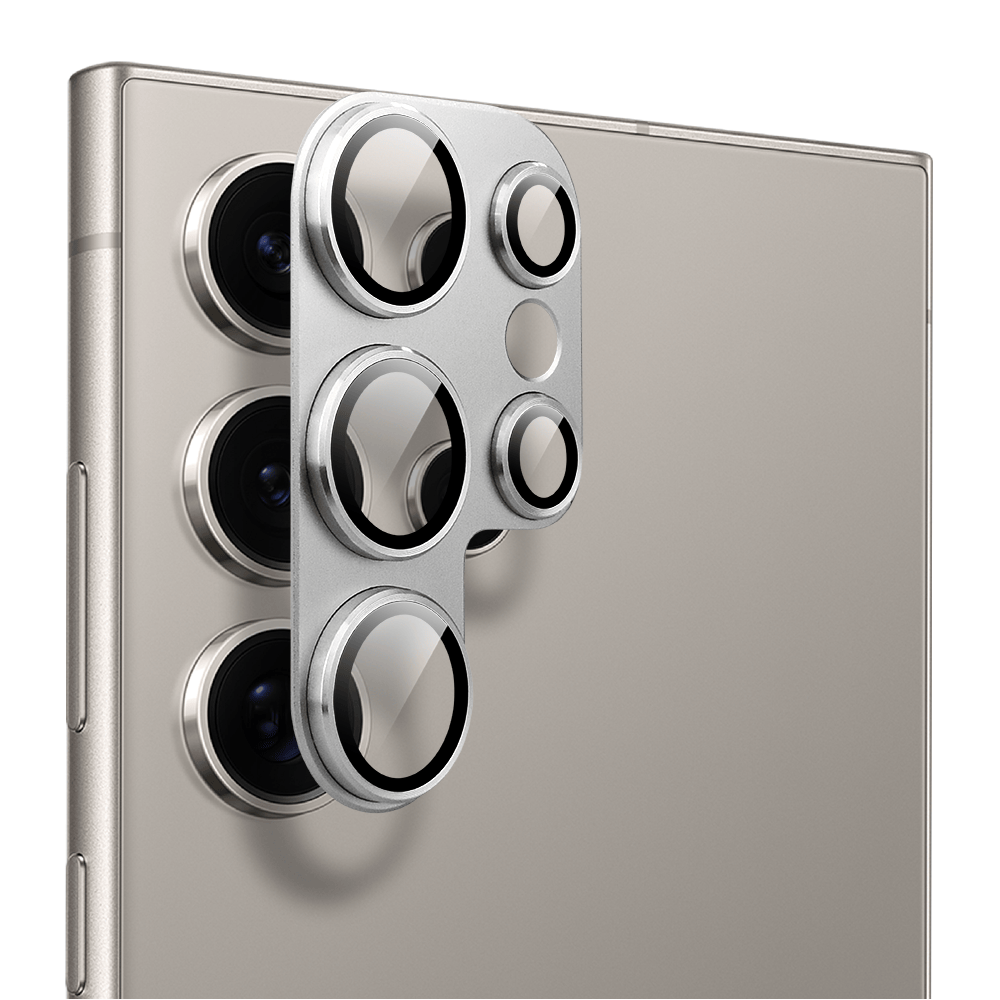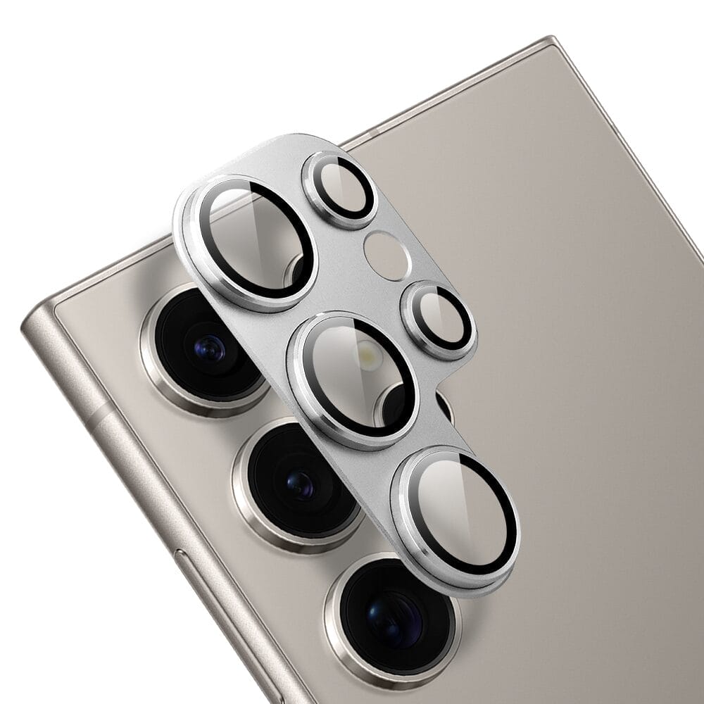 Metalowa osłona na cały aparat z wbudowanymi szkłami do Samsung S24 Ultra, srebrna