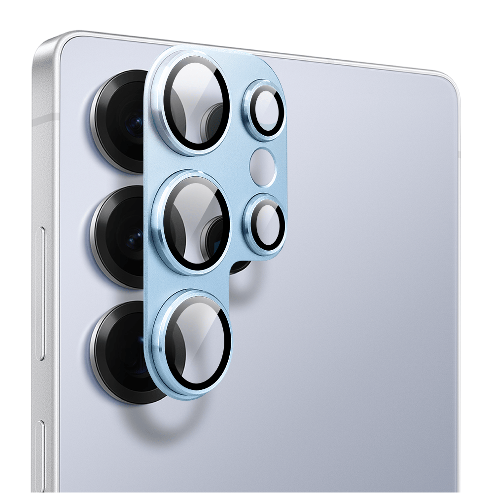 Metalowa osłona na cały aparat z wbudowanymi szkłami do Samsung S25 Ultra, niebieska
