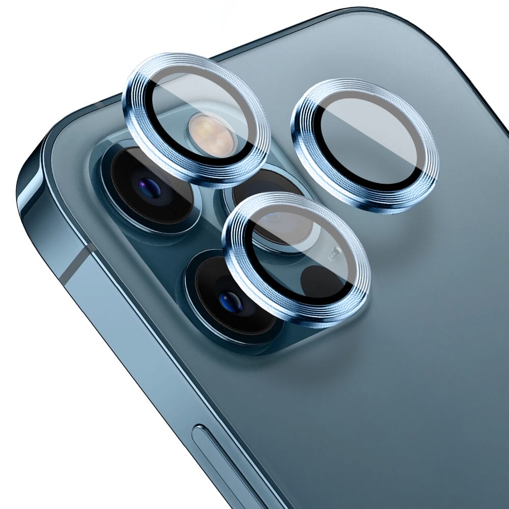 Metalowa osłona obiektywu aparatu ze szkła hartowanego 9H do iPhone 12 Pro, 1 zestaw, niebieski pacyficzny