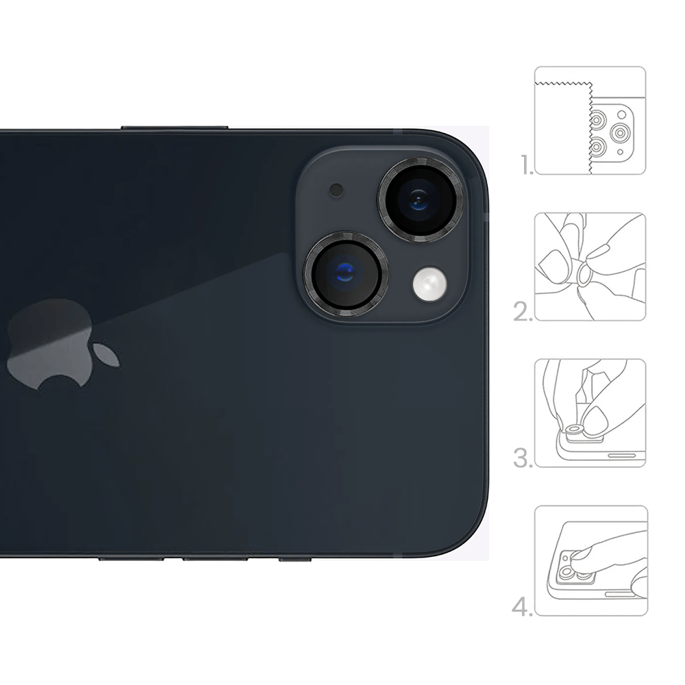 Metalowa osłona obiektywu aparatu ze szkła hartowanego 9H do iPhone 13, 1 zestaw, czarna
