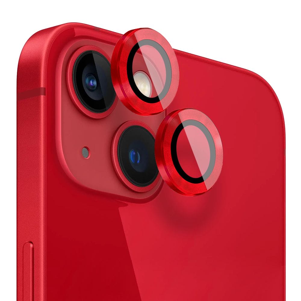 Metalowa osłona obiektywu aparatu ze szkła hartowanego 9H do iPhone 13 Mini, 1 zestaw, czerwona
