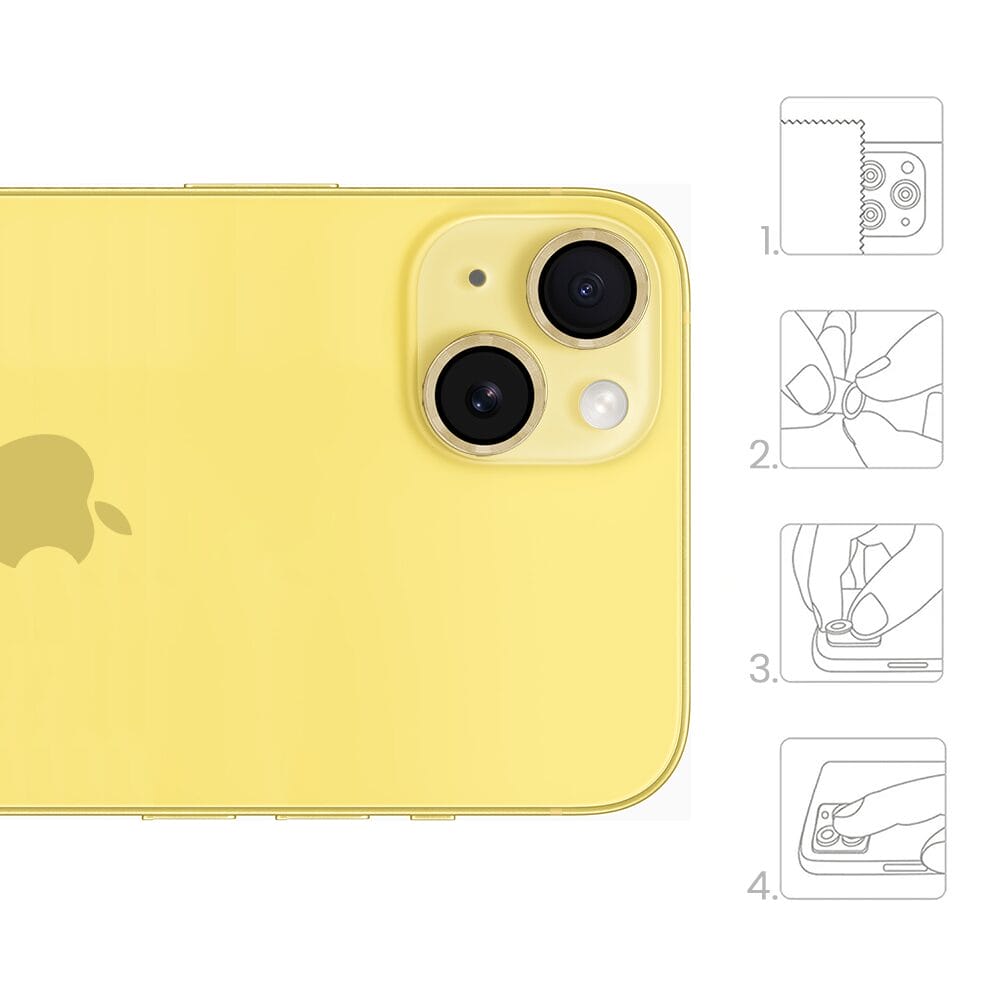 Metalowa osłona obiektywu aparatu ze szkła hartowanego 9H do iPhone 14, 1 zestaw, złota