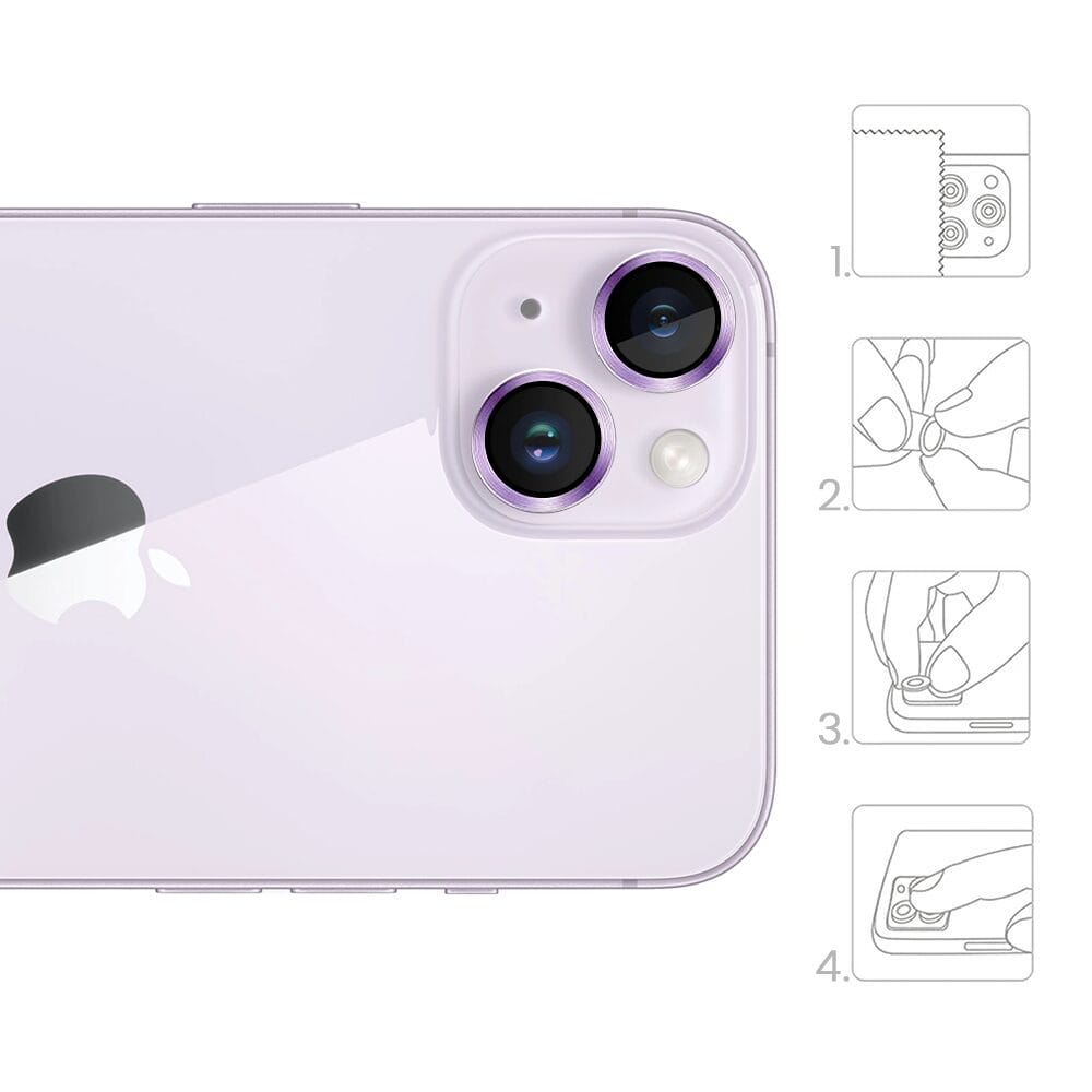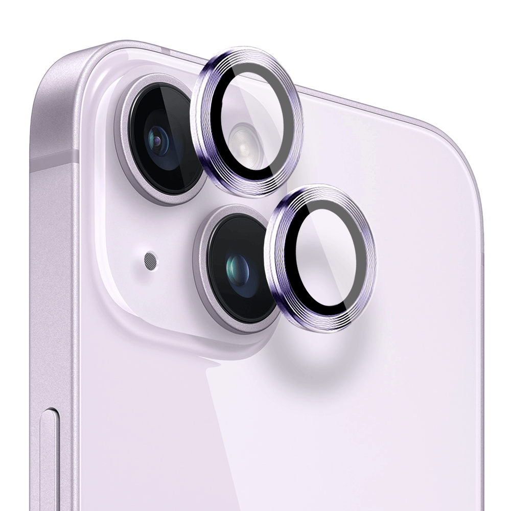 Metalowa osłona obiektywu aparatu ze szkła hartowanego 9H do iPhone 14 Plus, 1 zestaw, głęboka purpura