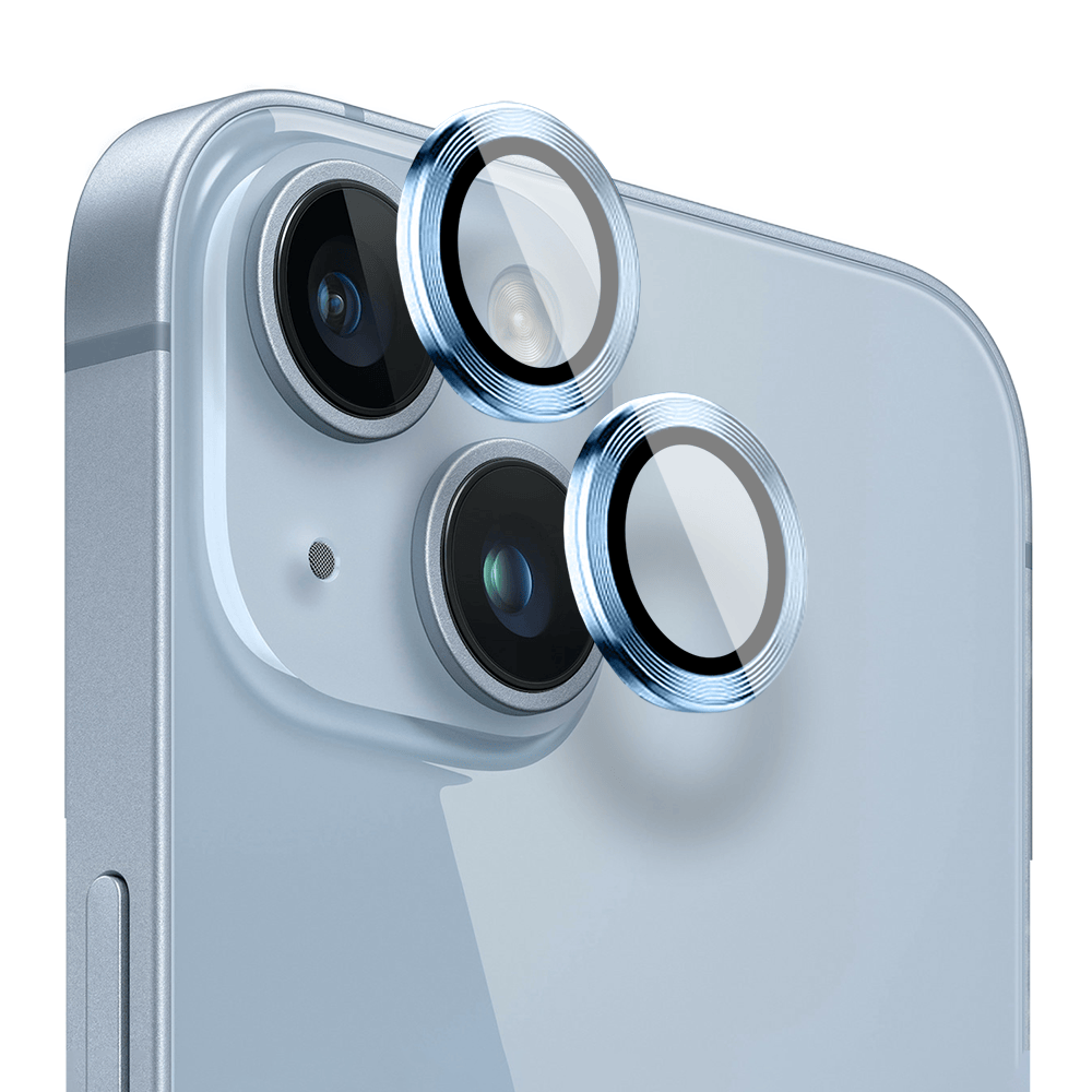 Metalowa osłona obiektywu aparatu ze szkła hartowanego 9H do iPhone 14 Plus, 1 zestaw, niebieska