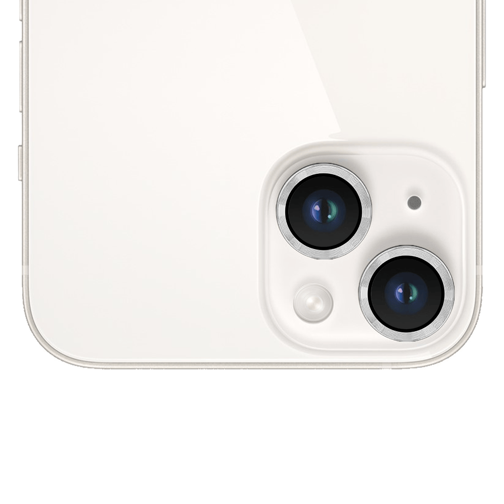 Metalowa osłona obiektywu aparatu ze szkła hartowanego 9H do iPhone 14 Plus, 1 zestaw, srebrna