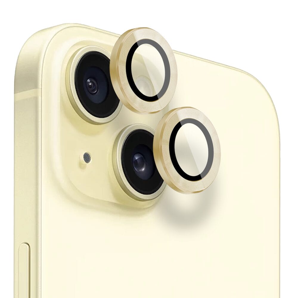 Metalowa osłona obiektywu aparatu ze szkła hartowanego 9H do iPhone 15, 1 zestaw, złota