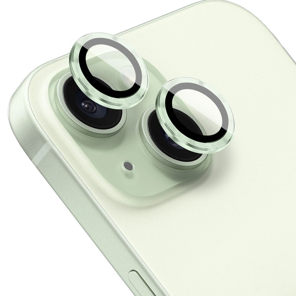 Metalowa osłona obiektywu aparatu ze szkła hartowanego 9H do iPhone 15 Plus, 1 zestaw, jasna zieleń