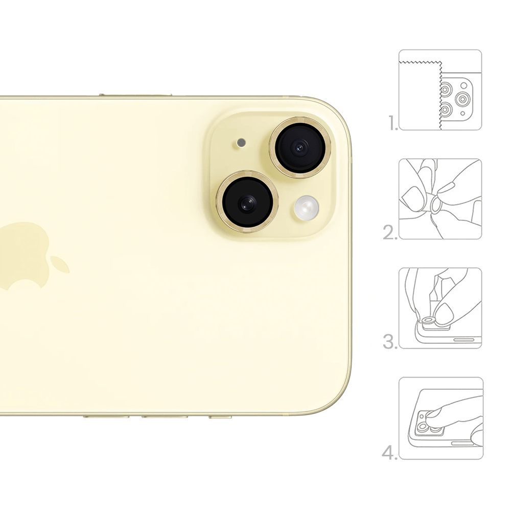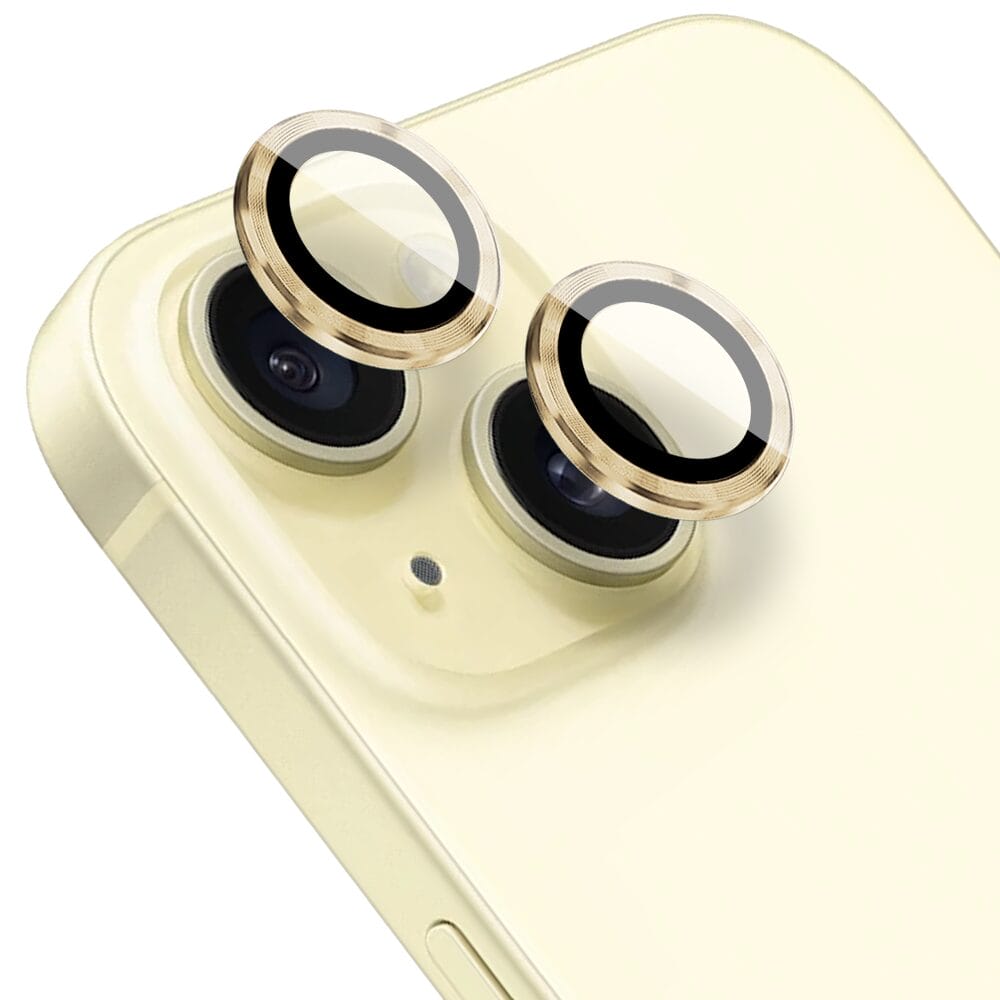 Metalowa osłona obiektywu aparatu ze szkła hartowanego 9H do iPhone 15 Plus, 1 zestaw, złota