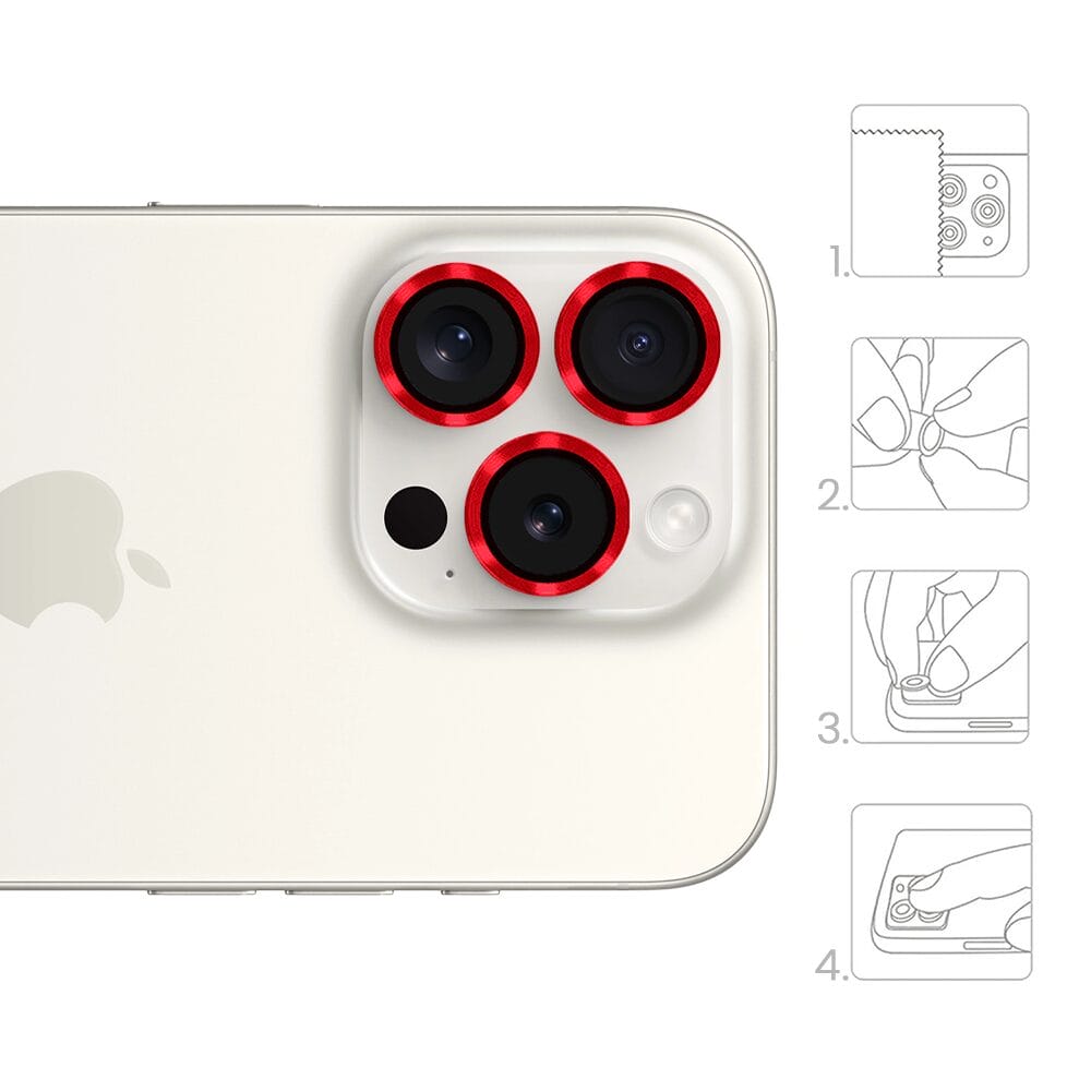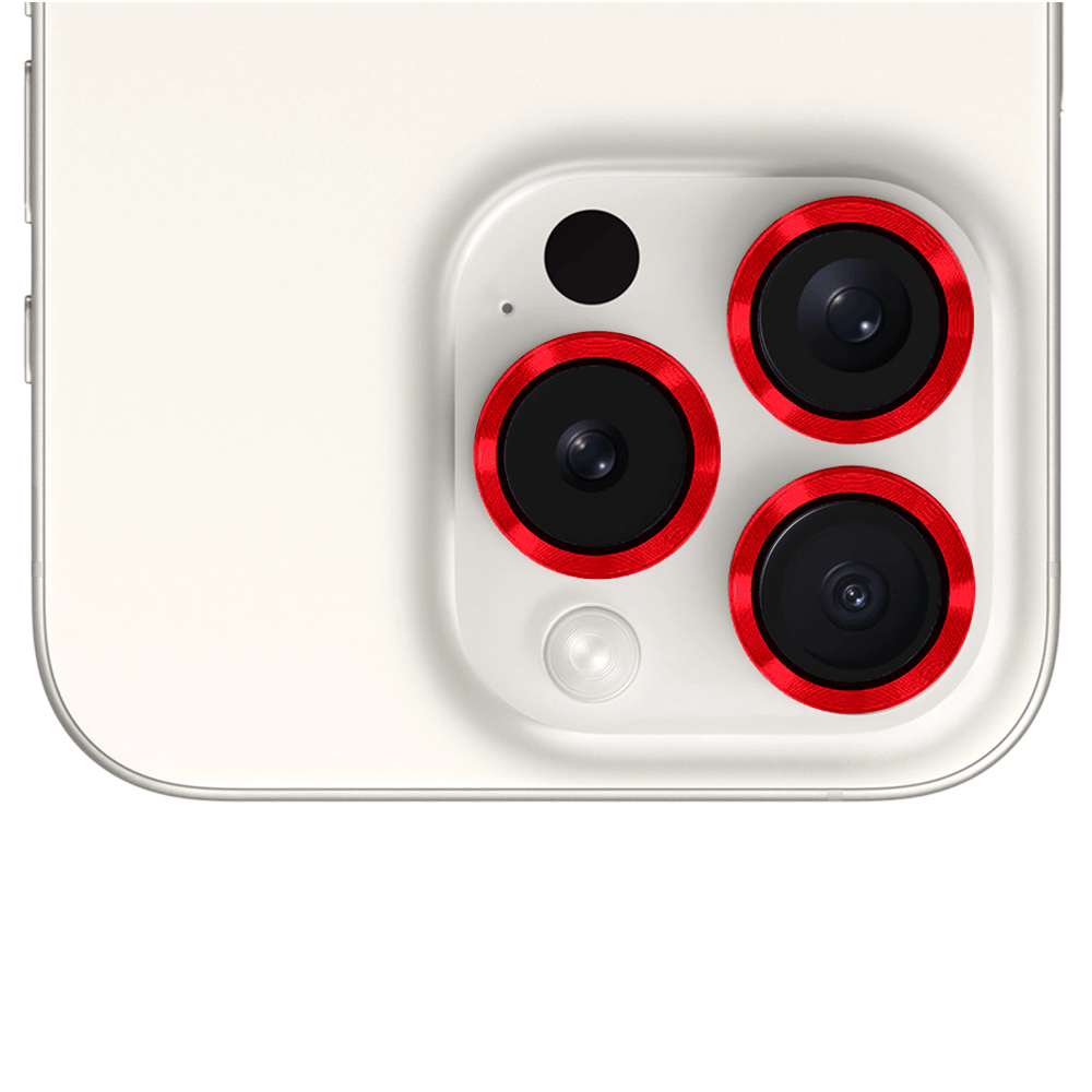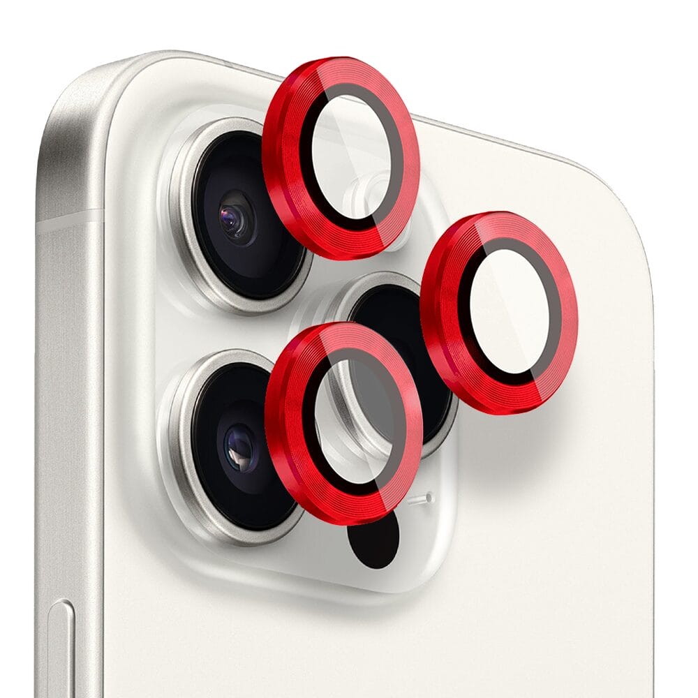 Metalowa osłona obiektywu aparatu ze szkła hartowanego 9H do iPhone 15 Pro, 1 zestaw, czerwona