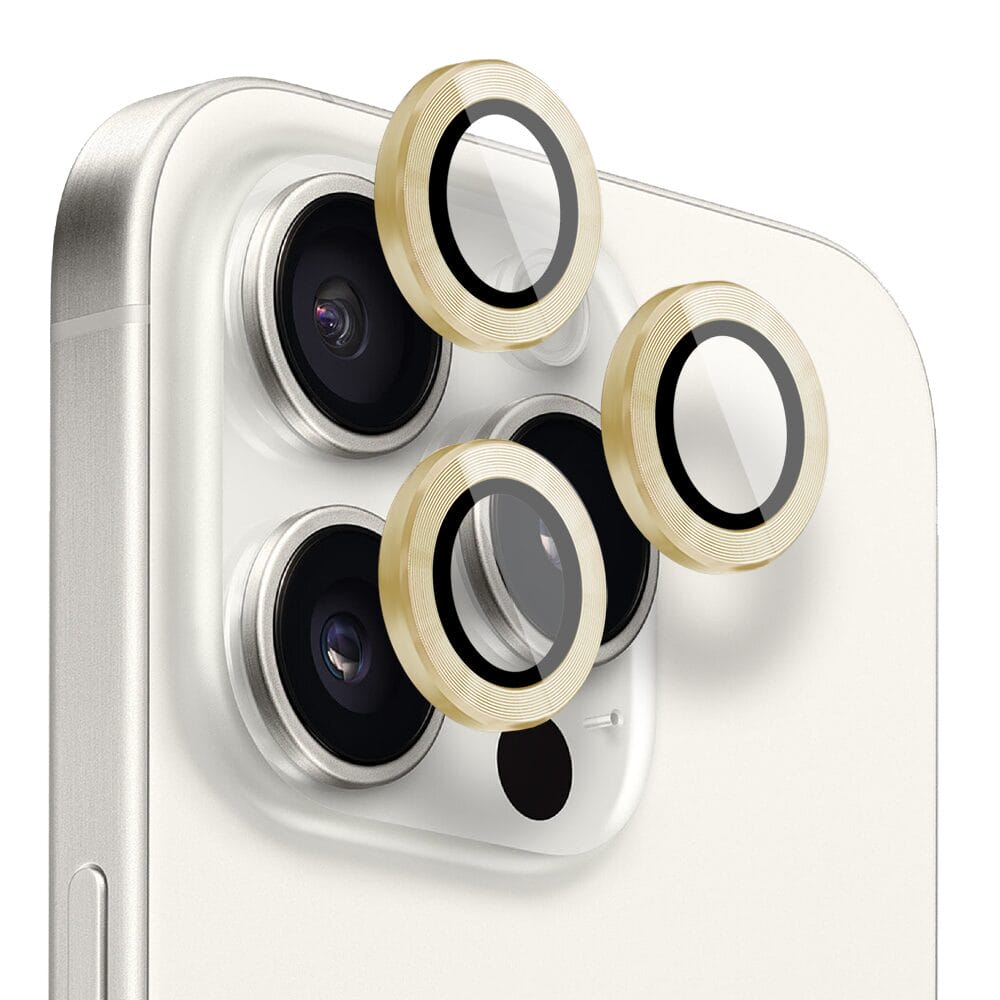 Metalowa osłona obiektywu aparatu ze szkła hartowanego 9H do iPhone 15 Pro, 1 zestaw, złota