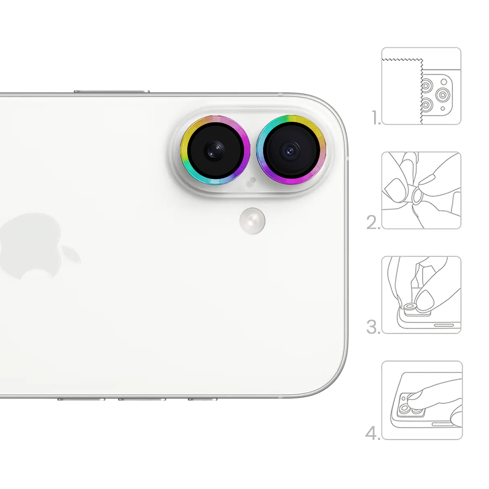 Metalowa osłona obiektywu aparatu ze szkła hartowanego 9H do iPhone 16 Plus, 1 zestaw, kameleon